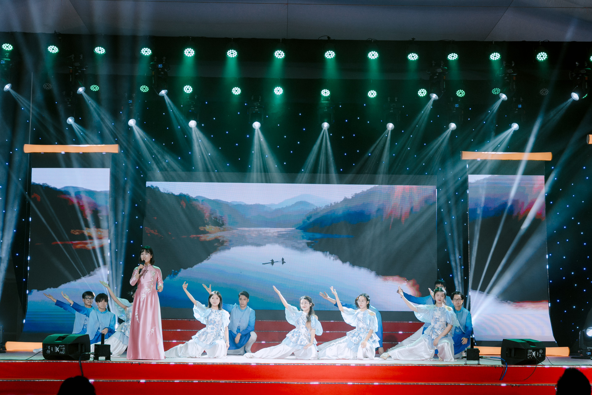 > Tiết mục đơn ca Một đời người một rừng cây do cô Nguyễn Thị Như và tốp múa trình bày.